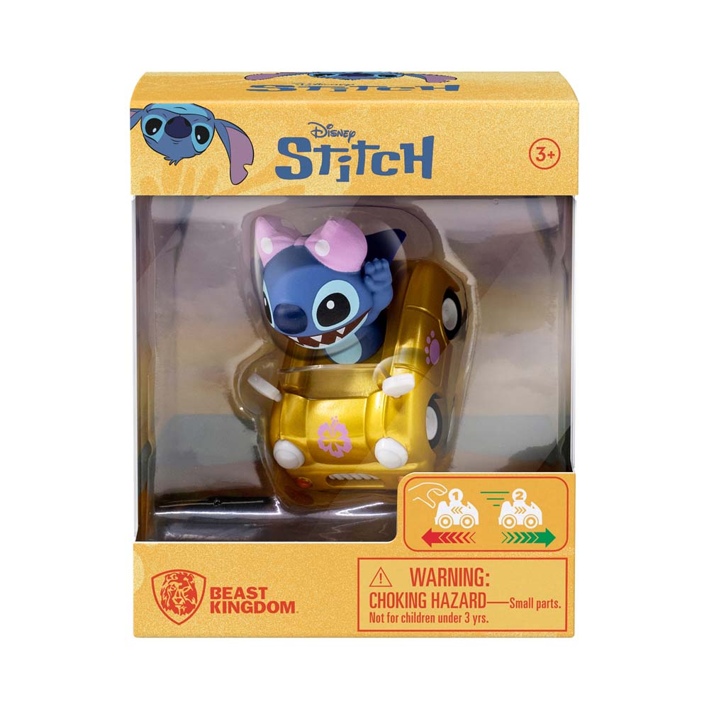 Adorable 2-inch mini pull-back vehicles featuring Stitch in fun, expressive poses and themes.